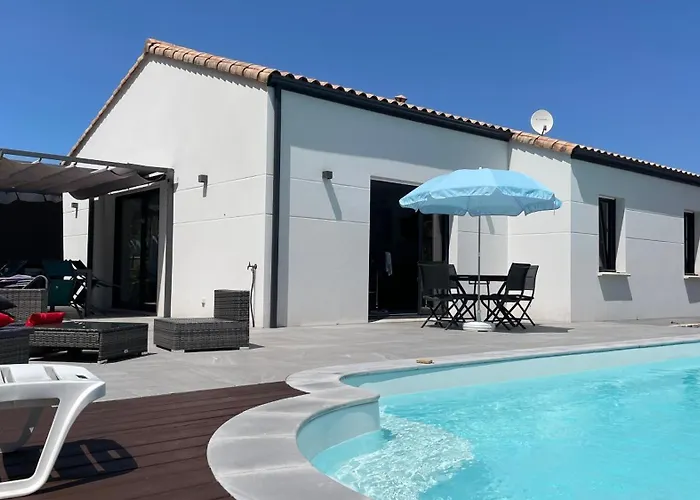 Villa Palmeraie - Piscine Privee Et Boulodrome是一家海滨别墅,处于圣让-德蒙,配备私人游泳池。 客人可以在露台上放松身心。